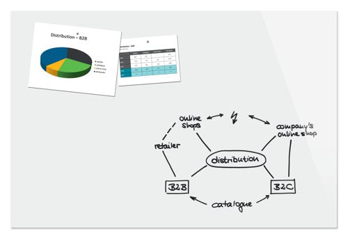 Pinboards and flipcharts are a thing of the past - the contemporary all-rounder for notes and reminders is Be!Board. This magnetic glass board is perfect for writing on and attaching notes magnetically. The 150 x 100 cm board is indispensable in meeting rooms and large offices. Use the glass board as a notice board: business cards, telephone lists or important notices are easily attached to the white board. Two strong neodym magnets are included - normal magnets are not strong enough. Use all standard board or chalk markers to jot down appointments and other information - the board is easy to wipe clean afterwards. Safety is an important feature of Be!Board. The glass plate is made of toughened safety glass (EN 12150-1). Be!Board comes with a 7-year manufacturers guarantee.