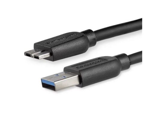 Does your regular USB 3.0 cable lift or push against your external hard drive causing it to move around on your desk? Are you forced to arrange your desk according to how your cable decides to bend and rest? The USB3AUB2MS features a slim USB wire construction that makes it easier to install your USB 3.0 devices and enables you to place them as needed throughout your workspace. Plus, the thin Micro USB connector moulding makes this a great cable for mobile USB 3.0 devices too - it lets you plug into your device without having to take it out of its case for every charge and sync. Organize your desk and your office to match your needs. This durable, lightweight cable is approximately half the thickness of a regular USB 3.0 cable giving you the freedom to place your devices as needed and with minimal clutter. The flexible, thin cable also reduces strain on the connection and prevents damage to the USB 3.0 port on your device. Provide full charging power, with no loss of charge time, even at distances of up to 6 feet (2 metres) away from your charger. As well as being ideal for connecting to your desktop devices, this cable provides the perfect solution for charging and syncing your USB 3.0 Micro B-equipped phones and tablets. The long charge cable overcomes distance restrictions and lets you stay connected even while you're taking notes in a boardroom, catching up on emails in a hotel room, or reading in a coffee shop. Connect to your mobile devices with ease. Stop removing the case from your phone or tablet every time you charge or sync your device. The cable offers a thin Micro USB connector moulding that plugs into your device even while itís inside a protective case. This Micro USB 3.0 cable is backed by StarTech.comís Lifetime warranty for guaranteed reliability.
