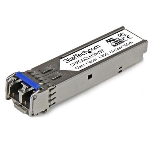 The SFPGLCLHSMST is a Cisco GLC-LH-SM compatible fibre transceiver module that has been designed, programmed and tested to work with CiscoÆ brand switches and routers. It delivers dependable 1GbE (1000 Mbps) connectivity over fibre cable, for 1000BASE-LX/LH compliant networks, with a maximum distance of up to 10 km (6.2 mi). Technical Specifications: Wavelength: 1310 nm Maximum Data Transfer Rate: 1.25 Gbps Type: Single Mode / Multimode Fibre Connection Type: LC Connector Maximum Transfer Distance: 10 km (6.2 mi) - SM / 1 km (0.6 mi) - MM MTBF: 3,092,408 hours Power Consumption: Less than 1 Watt Digital Diagnostics Monitoring (DDM): No This SFP fibre module is hot-swappable, making upgrades and replacements seamless by minimizing network disruptions. StarTech.com SFPs All StarTech.com SFP & SFP+ transceiver modules are backed by a lifetime warranty and free lifetime multilingual technical support. StarTech.com offers a wide variety of SFP modules and direct-attach SFP cables, providing the convenience and reliability you need to ensure dependable network performance.