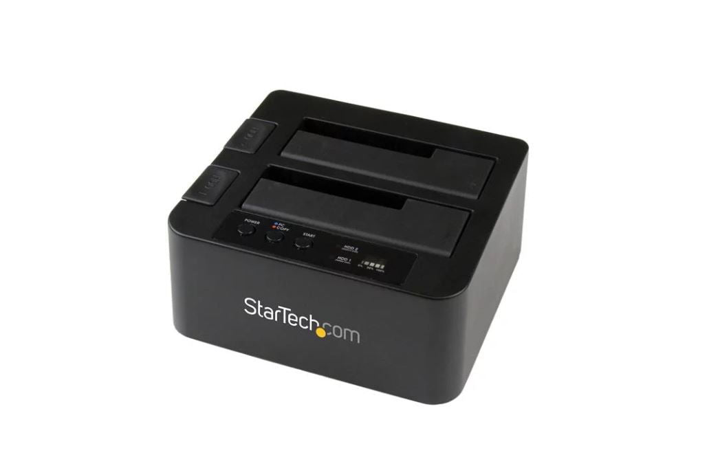 The SDOCK2U33RE Dual 2.5/3.5" SATA HDD/SSD duplicator dock lets you duplicate/clone an existing hard drive without the use of a host computer system -- or dock and swap drives from your desktop or laptop computer simultaneously, using a single USB or eSATA port. Versatile Features The SDOCK2U33RE offers convenient dual-function performance. As a hard drive duplicator, the SDOCK2U33RE lets you create an exact sector-by-sector clone from one hard drive to another, including partitions and boot sector information -- ensuring data integrity and consistency for sensitive operations, such as data recovery. As an external hard drive dock the SDOCK2U33RE lets you connect your drives through either eSATA or USB, with each drive slot individually supporting high capacity 2.5/3.5" hard drives or solid state drives, tested up to 4 TB. Fast Performance With support for SATA III (6 Gbps) you can maximize efficiency with duplication speeds up to 22 GB per minute, and eSATA docking speeds up to 6 Gbps. The Dock can also be connected through USB 3.0 with UASP for transfer speeds up 5 Gbps (70% faster than conventional USB 3.0). See our UASP testing results below for further details.
