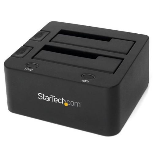 The SDOCK2U33 Dual 2.5/3.5" SATA hard drive docking station lets you dock and swap drives from your desktop or laptop computer simultaneously, using a single USB port. Enhanced with UASP (USB Attached SCSI Protocol), this hard drive docking station lets you get the most out of the fastest drive technologies such as SATA III (6 Gbps), solid state drives (SSD) and hybrid, drives with performance up to 70% faster than conventional USB 3.0 when paired with a UASP-enabled host controller. See our UASP testing results below for further details. The hard drive dock features independent power buttons for each individual drive, ensuring you can operate each hard drive separately. This gives you the freedom to hot-swap one drive while transferring data to another, saving you time. Extend the value of this hard drive docking station further with the addition of our SATA to IDE Hard Drive Adapter (SAT2IDEADP), allowing easy insertion of any 2.5 or 3.5in. IDE hard drive into a SATA hard drive dock. To ensure compatibility with your computer system, the SDOCK2U33 supports all of the leading operating systems, including: Microsoft WindowsÆ (8/7/Vista/XP/Server 2008/Server 2003), AppleÆ OSX (10.9/10.8/10.7/10.6), Linux, and Google Chrome OSô. SDOCK2U33 is backed by a StarTech.com 2-year warranty and free lifetime technical support. Improved Performance with UASP UASP is supported in Windows 8, Mac OSX (10.8 or above), and Linux. In testing, UASP performs with a 70% faster read speed and 40% faster write speed over traditional USB 3.0 at peak performance.