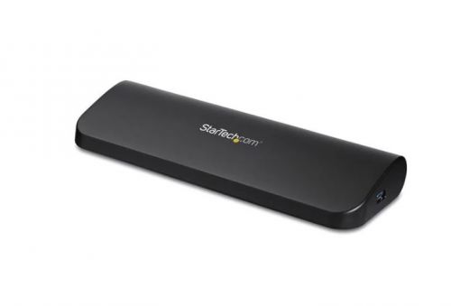 This USB 3.0 dock combines three USB 3.0 ports, headphone and microphone audio connectors, and a Gigabit Ethernet RJ45 port, into a single docking station for maximum productivity. Offering flexible dual video combinations right out-of-the-box, this universal laptop docking station features HDMI, DVI and VGA external monitor outputs. Each video output supports HD video resolutions (2048x1152 max) and HD video playback for an ideal solution to expanding your notebook's video capability. The built-in USB hub features three USB 3.0 ports for connecting extra peripherals such as external hard drives or a wired mouse, as if they are connected directly to your laptop. The integrated RJ45 Ethernet port supports speeds of 10/100/1000 Mbps, giving you an instant connection to a wired network. StarTech.com laptop docking stations can be used for cost savings and faster deployment with just a single cable. This USB 3.0 Docking Station is backed by a competitive 3-year warranty and free lifetime Technical Support.