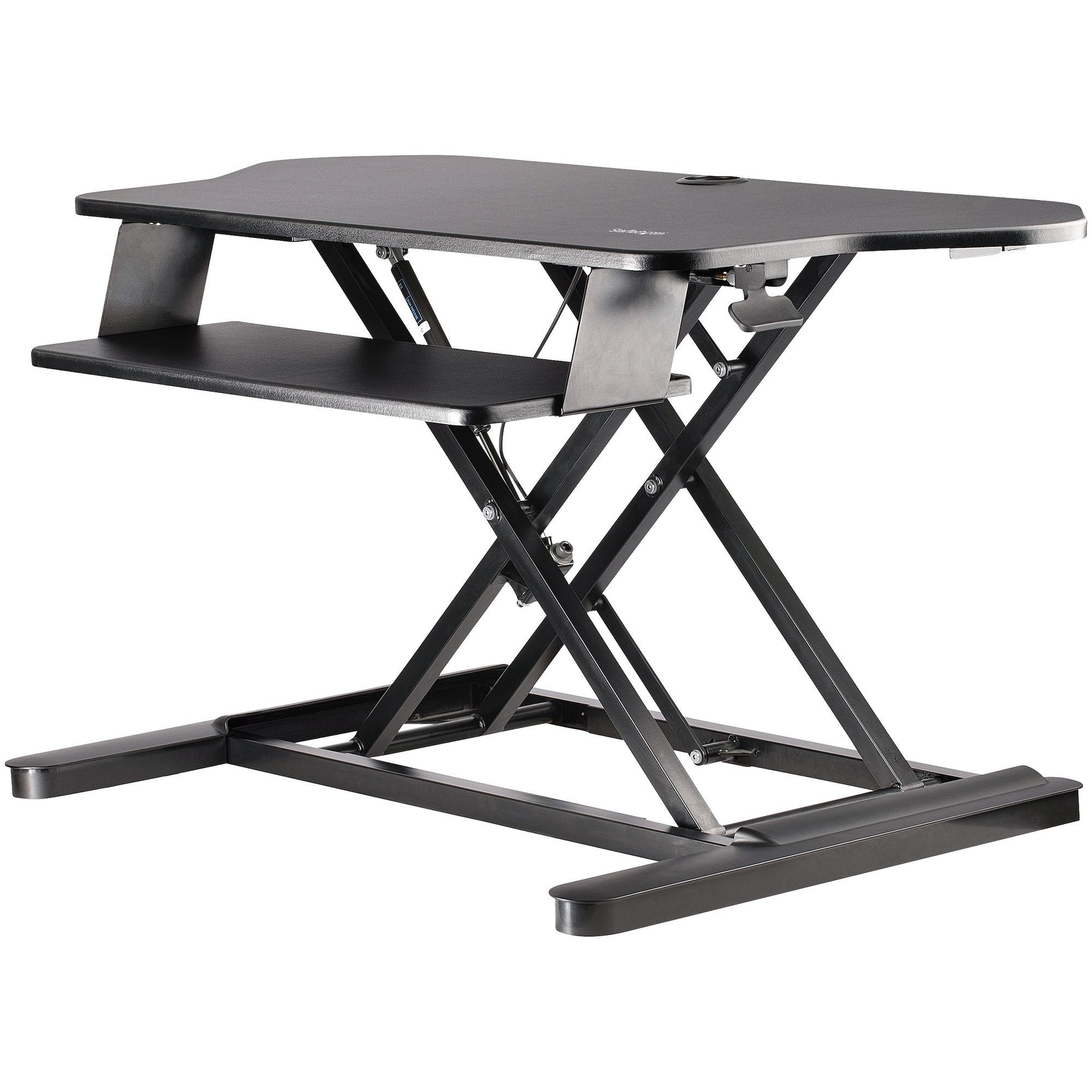 Go From Sitting to Standing The sit-stand workstation is designed to support your ergonomic needs. With a simple squeeze of a paddle, you can easily switch your position to sitting or standing, to keep a balanced level of movement. The workstation features a pneumatic spring arm that provides effortless movement - you simply raise or lower the platform with one squeeze of the lever. You can adjust the standing desk to match your exact height requirements, with a height adjustment range of 16.9'' (430 mm).