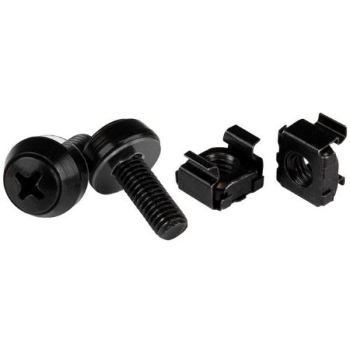 This 100-pack of M6 mounting screws and cage nuts is convenient to have on hand for installing rack-mountable equipment, such as your server, network or audio/video equipment. Each pack includes a cage nut installation tool to ensure a fast and simple installation of each cage nut. This TAA compliant product adheres to the requirements of the US Federal Trade Agreements Act (TAA), allowing government GSA Schedule purchases. They are also suitable for new server rack and cabinet setups - perfect for those times when you drop or misplace a nut or two. The bulk package ensures that you have enough available for all your installation needs, when you need them. Both the server rack screws and the nuts come in an all-black finish for a seamless look. The CABSCREWM62B is backed by a StarTech.com 2-year warranty.