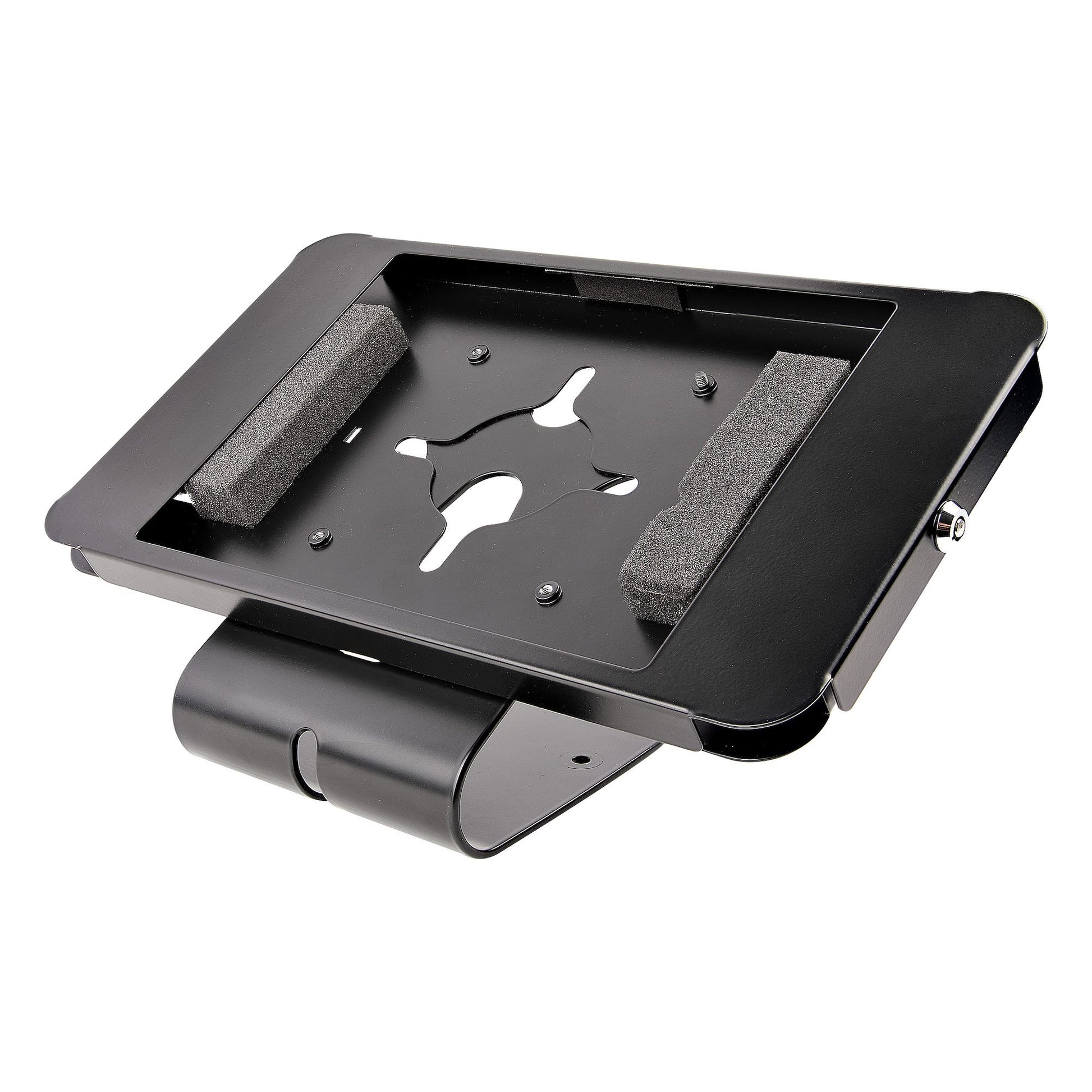 Secure and Protected The enclosure protects your tablet from tampering and theft using a lock and key, and for enhanced security, it has two K-slots at the back. The display is fully accessible while blocking the buttons from access. The all-steel construction makes for a sturdy enclosure that protects and shields the tablet from day-to-day wear and tear.