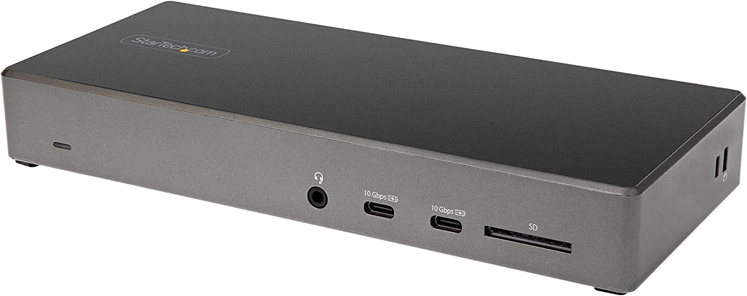 This USB-C Gen 2 10Gbps docking station turns your USB-C or Thunderbolt 3 Windows laptop or Chromebook into a powerful workstation. A USB 3.2 Gen 2 Type-C dock features everything you need, from triple video outputs up to 4K 60Hz to 10Gbps USB-C & USB-A downstream peripheral ports to 100W Power Delivery. This USB-C Gen 2 docking station with DP 1.4 and HDMI 2.0 HBR3 support, is a perfect choice for dual or triple monitor setup, supporting up to triple 4K 30Hz nearly uncompressed video resolution output , with two DisplayPort and one HDMI outputs. Maximum dual and triple 4K display performance is supported on USB-C 11th Gen Intel-based (DP 1.4 HBR3 with DSC support) Windows Thunderbolt 3 or USB-C laptops, but backwards compatibility to older laptop generations and lower resolution monitor requirements. Power and charge USB-C/Thunderbolt 3 workstation laptops & ultrabooks with 100 watt power delivery, to keep high performance laptops sufficiently charged during heavy productivity usage. Charge smartphones and other devices with USB-C downstream charging ports featuring BC 1.2 charging specification. Fast-charge ports support always-on charging so devices will charge whether or not a host laptop is connected. This USB-C Gen 2 docking station features 6 downstream USB ports in total to connect USB peripherals and an SD (4.0) card reader for media storage.