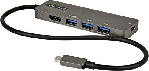 This USB-C multiport adapter with DP 1.4 supports 4K 60Hz HDMI and turns your MacBook Pro, Dell XPS, or other USB-C laptops or tablet into a workstation, anywhere you go. The USB Type-C multiport adapter provides 4K HDMI video output, three USB 3.2 Gen 1 Type-A (5Gbps) ports including one BC 1.2 charge port; one USB-C port supporting both the 100W PD passthrough, all through one connection to your laptop's USB-C or Thunderbolt 3 port. Plus, it offers advanced charging through USB Power Delivery 3.0 and an extra-long attached 12-inch (30 cm) host cable for an extended reach to offer more set up flexibility. The portable docking station connects your laptop to a 4K 60Hz HDMI monitor (4096 x 2160p) to create a powerful workstation. It can also connect to an ultrawide monitor. The USB-C to USB 3.1 Gen 1 hub gives you three USB-A ports to connect your legacy USB devices, plus one shared USB-C port for either power delivery pass through. With support for USB PD 3.0 (up to 100W), the USB Type-C multiport adapter lets you power and charge your laptop, and power your peripherals when connected to a USB-C power adapter. PD 3.0 features Fast Role Swap to prevent USB data disruption when you switch power sources (USB-C power adapter to bus power).