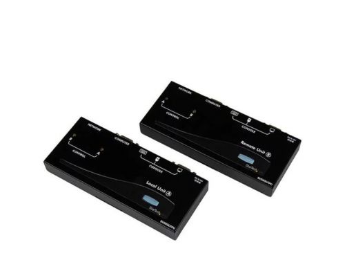 The SV565UTPUGB USB VGA KVM Console Extender over CAT5 UTP (500 ft) lets you control a server, computer or multiple computers (connected through KVM Switch) over a standard Cat5 or Cat6 UTP network cable connection, at distances of up to 500 ft (150 m) away. PC connection cables are included with this product for a ready out of the box solution. You can use your existing keyboard, mouse, and monitor to access both the server room and your office computer, saving space and avoiding the need for a dedicated remote console by allowing you to switch between workstation view and KVM view at the remote location. This product is TAA compliant and backed by a Startech.com 2-year warranty with free lifetime technical support.